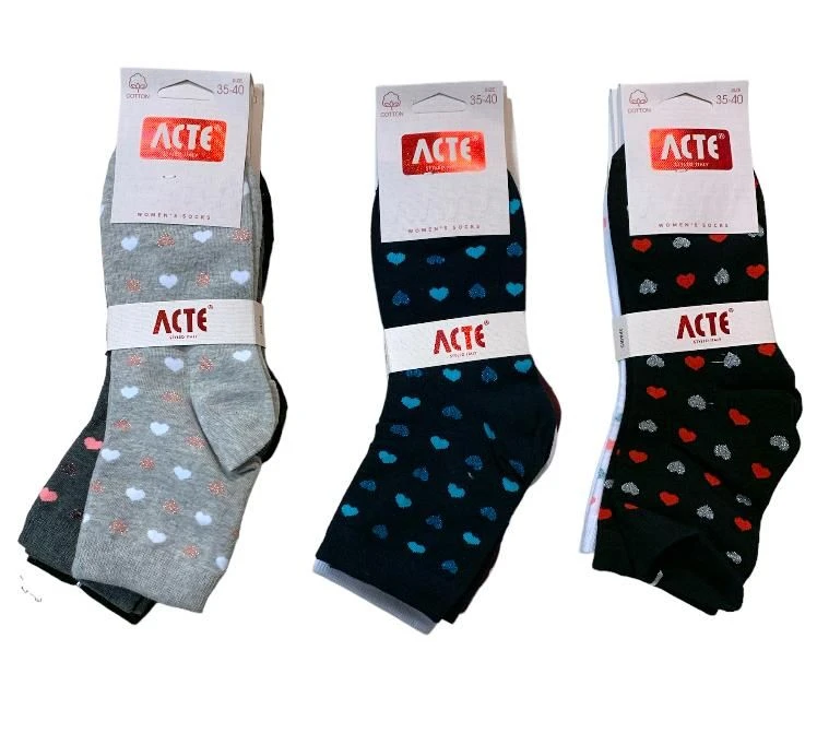 Calzino Donna corto cotone Acte 2025/19 in cotone elasticizzato fantasia cuori
