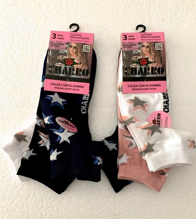 Calzino Donna Corto cotone mercerizzato El Charro Monia 52 fantasia stelle