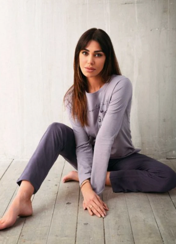 Pigiama Donna cotone caldo Jadea Home 5164 maglia girocollo con tasca in tinta sul davanti e stampa pantalone orlato in contrasto . Composizione: