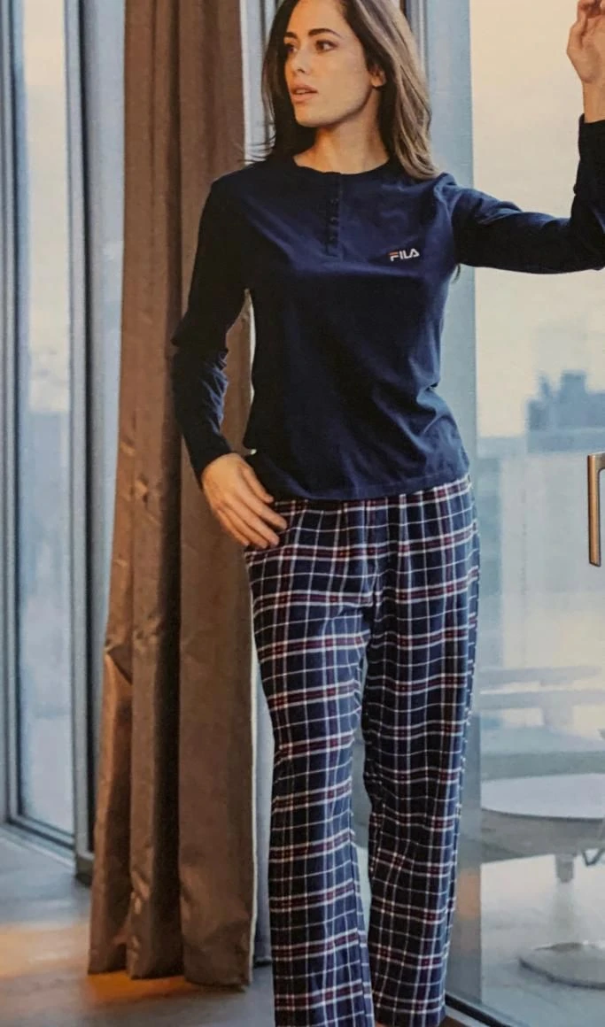 Offerta outlet campionario Pigiama Donna Fila 4075 cotone caldo invernale morbido e confortevole con maglia girocollo tinta unita e pantalone fantasia quadri tessuto flanella tessuto elasticizzato ottima vestibilita’ e massimo confort