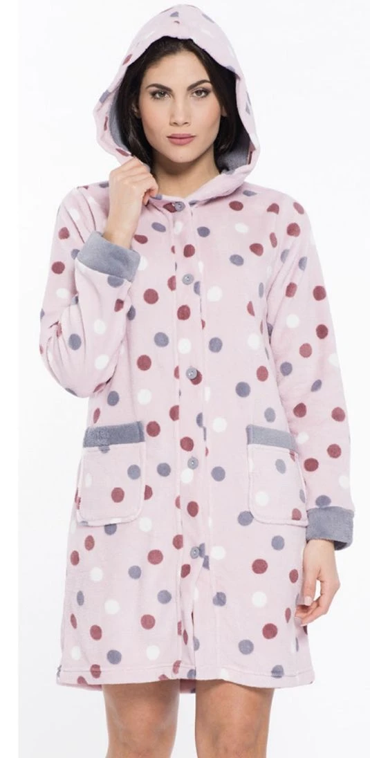 Vestaglia Donna tutta aperta con bottoni Coral Pile Karelpiu’ 9218 morbida e calda con capuccio
